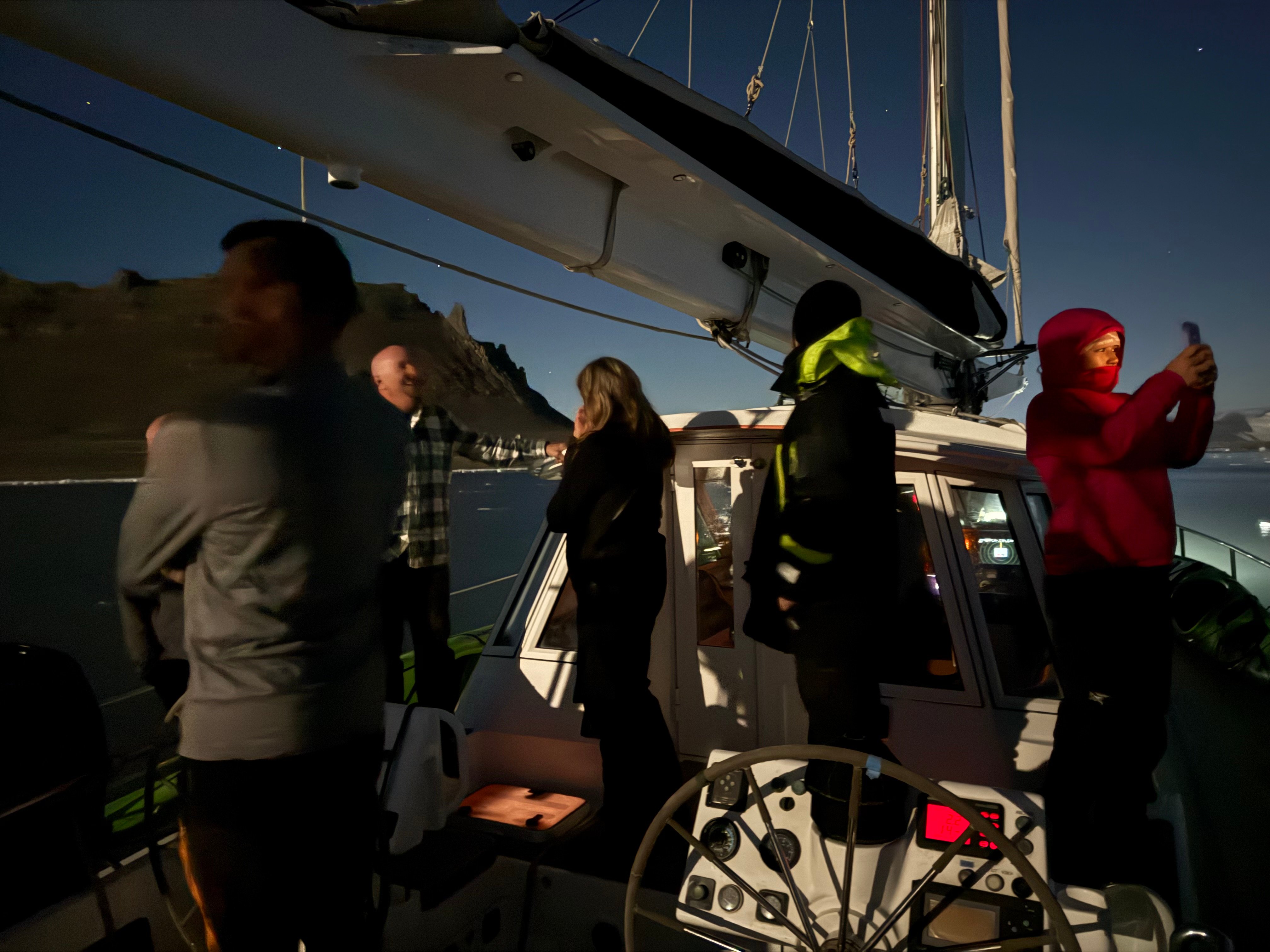 Here I wanted to capture what mealtimes were like on the boat. Everyone cozily nestled into the cockpit together, enjoying some of chef's amazing meals. Here was some kind of thick meat cutlets and large carrot pieces.