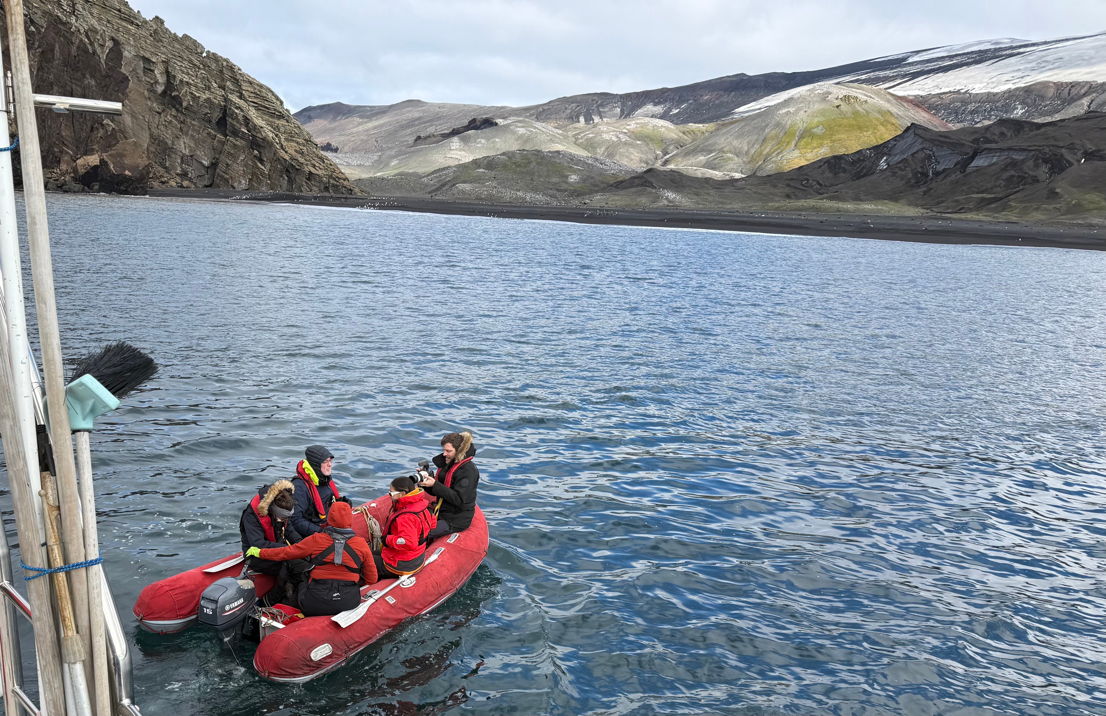 We paused on the outside edge of Deception to get our first look at the penguins. Unfortunately, this colony had an outbreak of avian flu, so we weren't allowed to land or get too close, so we took the dingy over for some drive-bys.