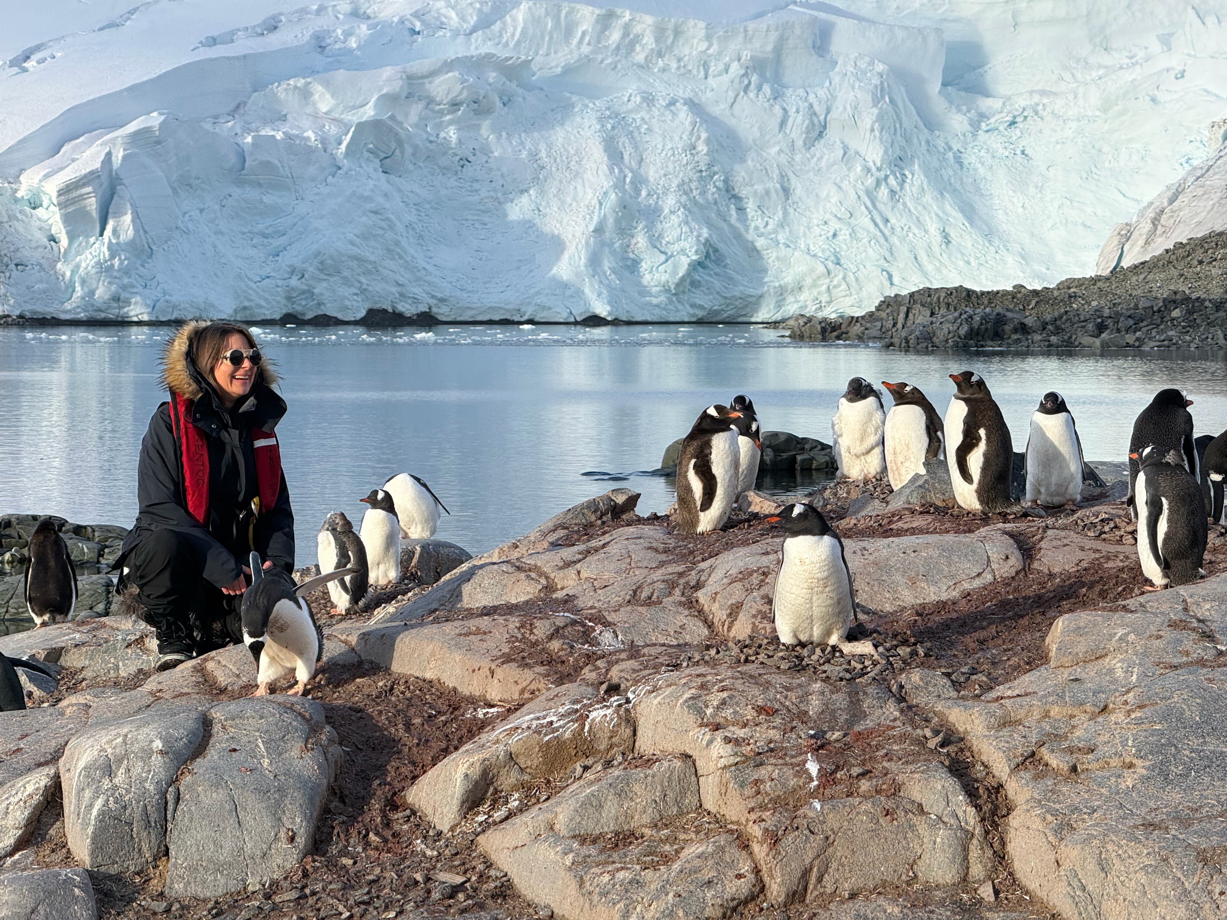 One day while kayaking (an earlier day than the polar plunge above) we were passing an area where a cruise ship was dingy-ing people to and from the beach to see penguins.
