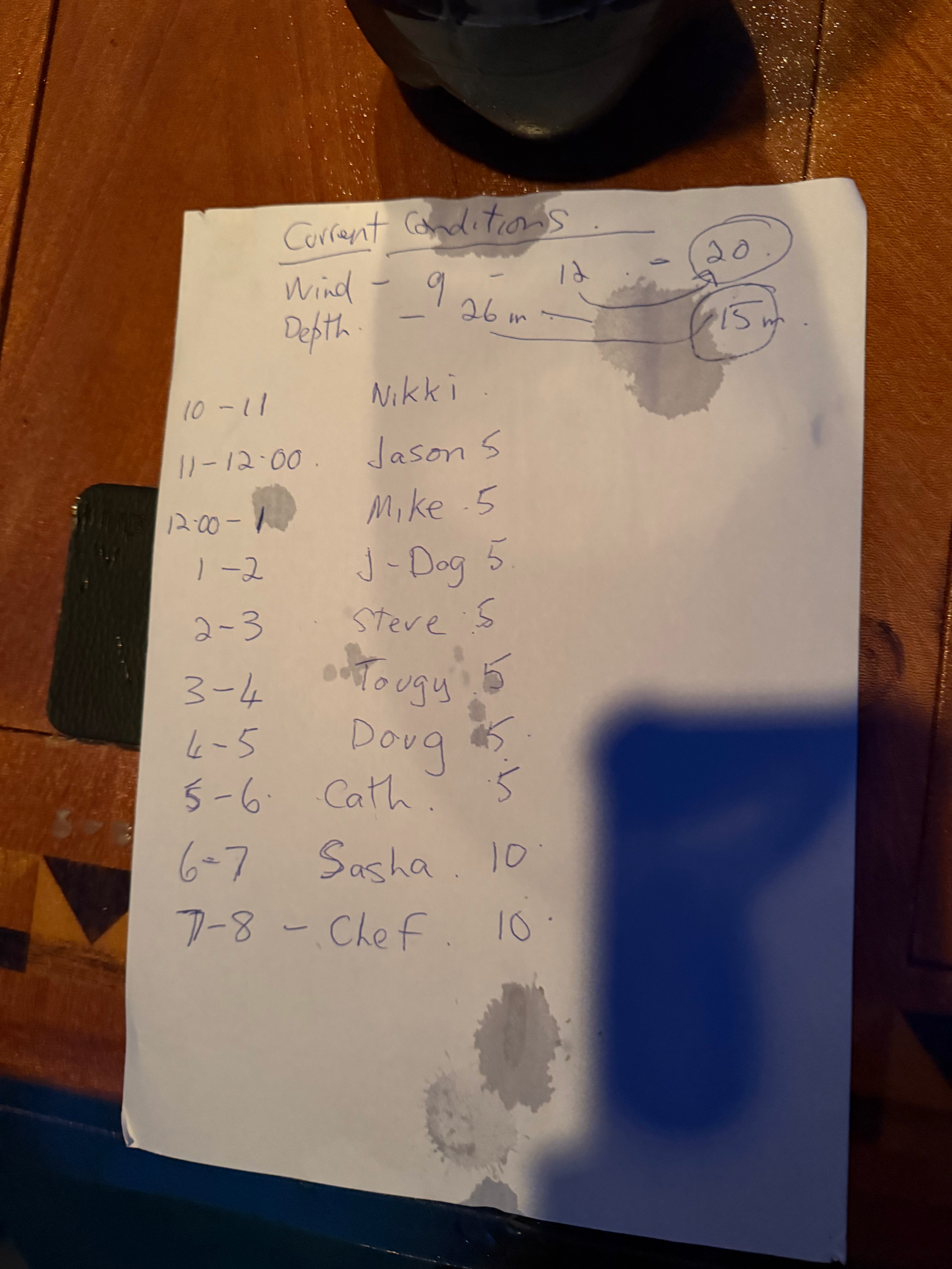 the night before we left, we were close to rocks and in a less protected anchorage so we had our first time on anchor watch. For the less experienced among among us (raises hand) Cath even wrote the wind and depth conditions we should watch for and if we exceeded those, we were to wake one of the crew.