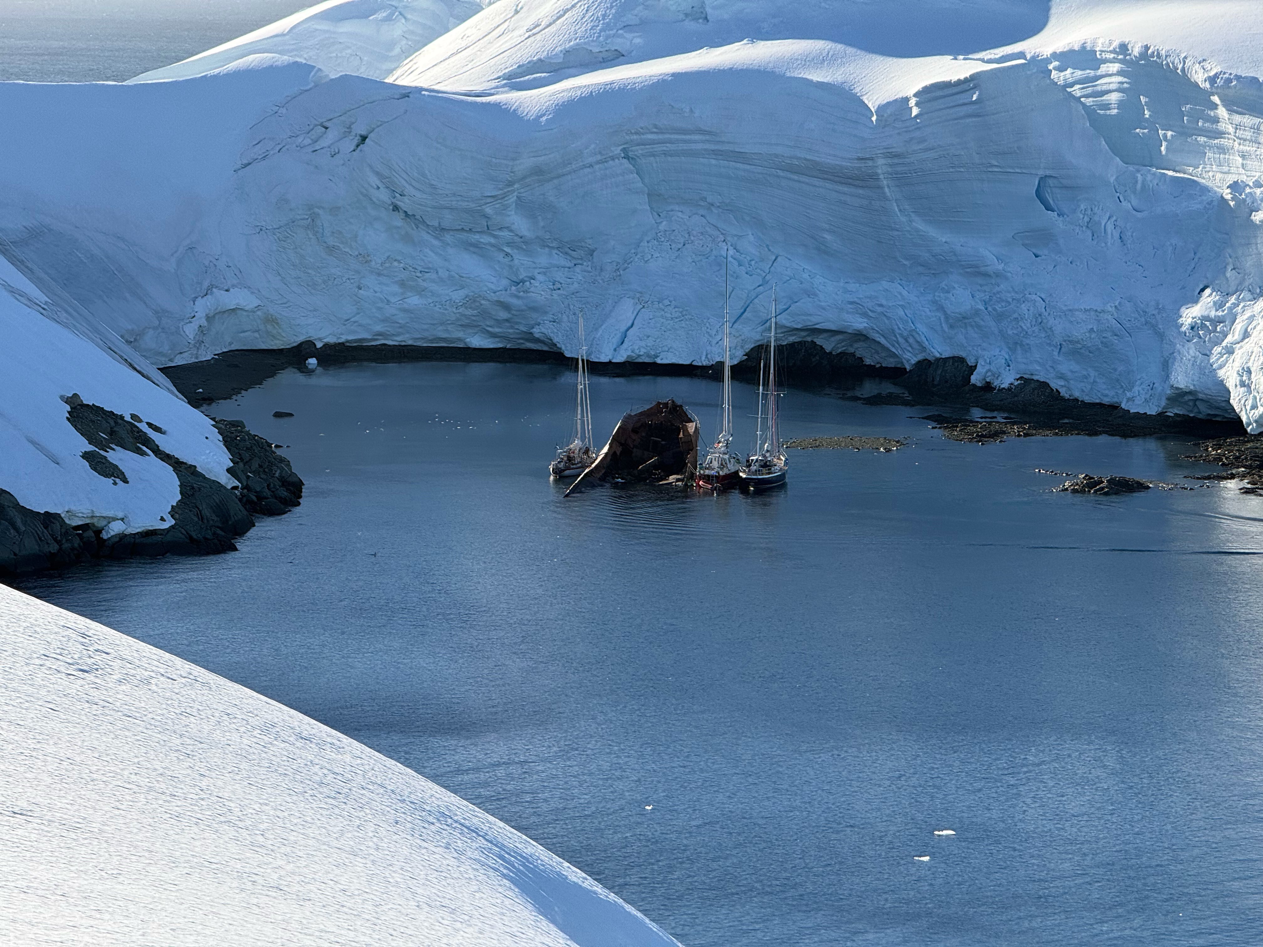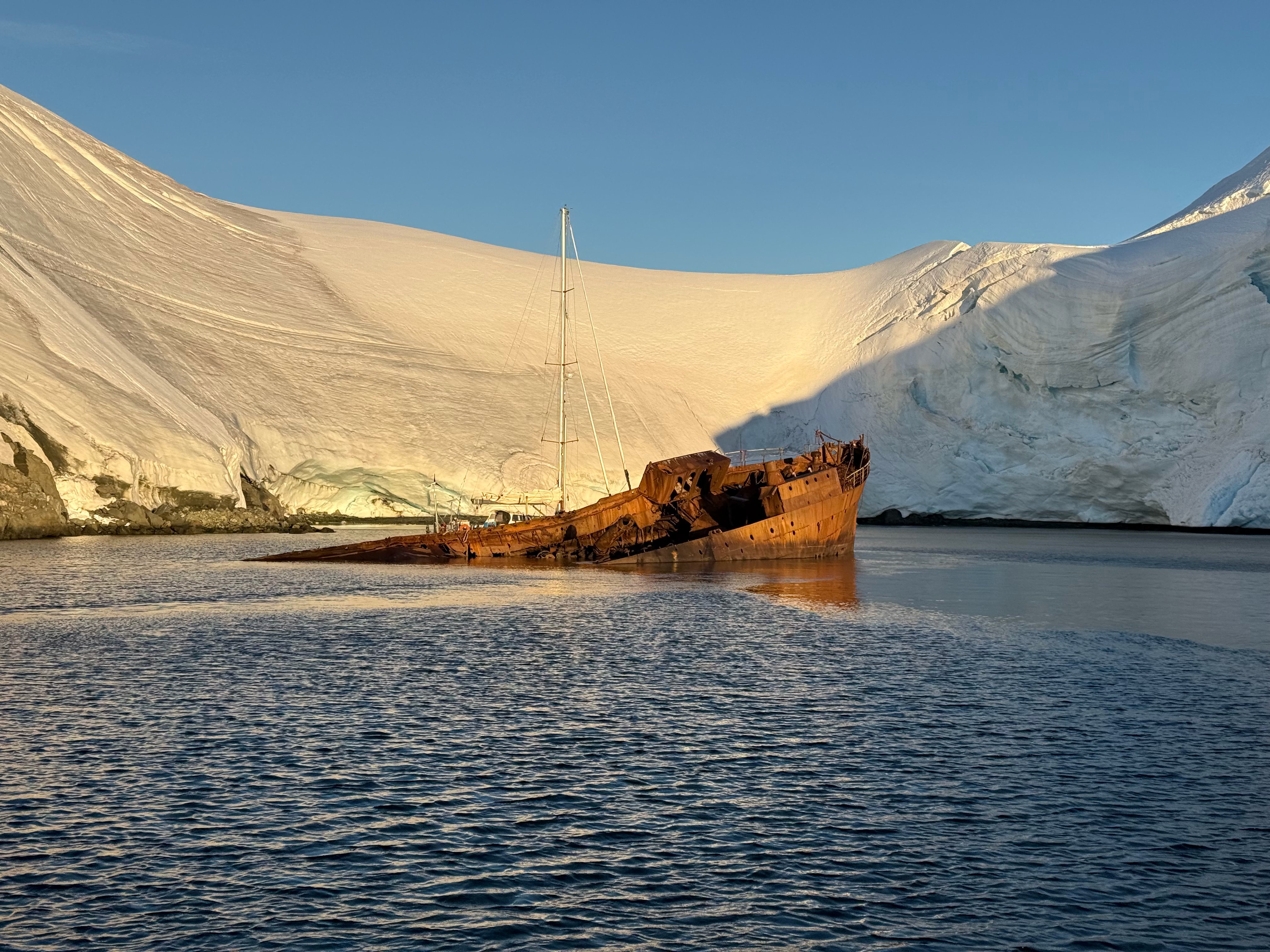 A cleaner shot of the sunken whaling ship as we left for our next anchorage.