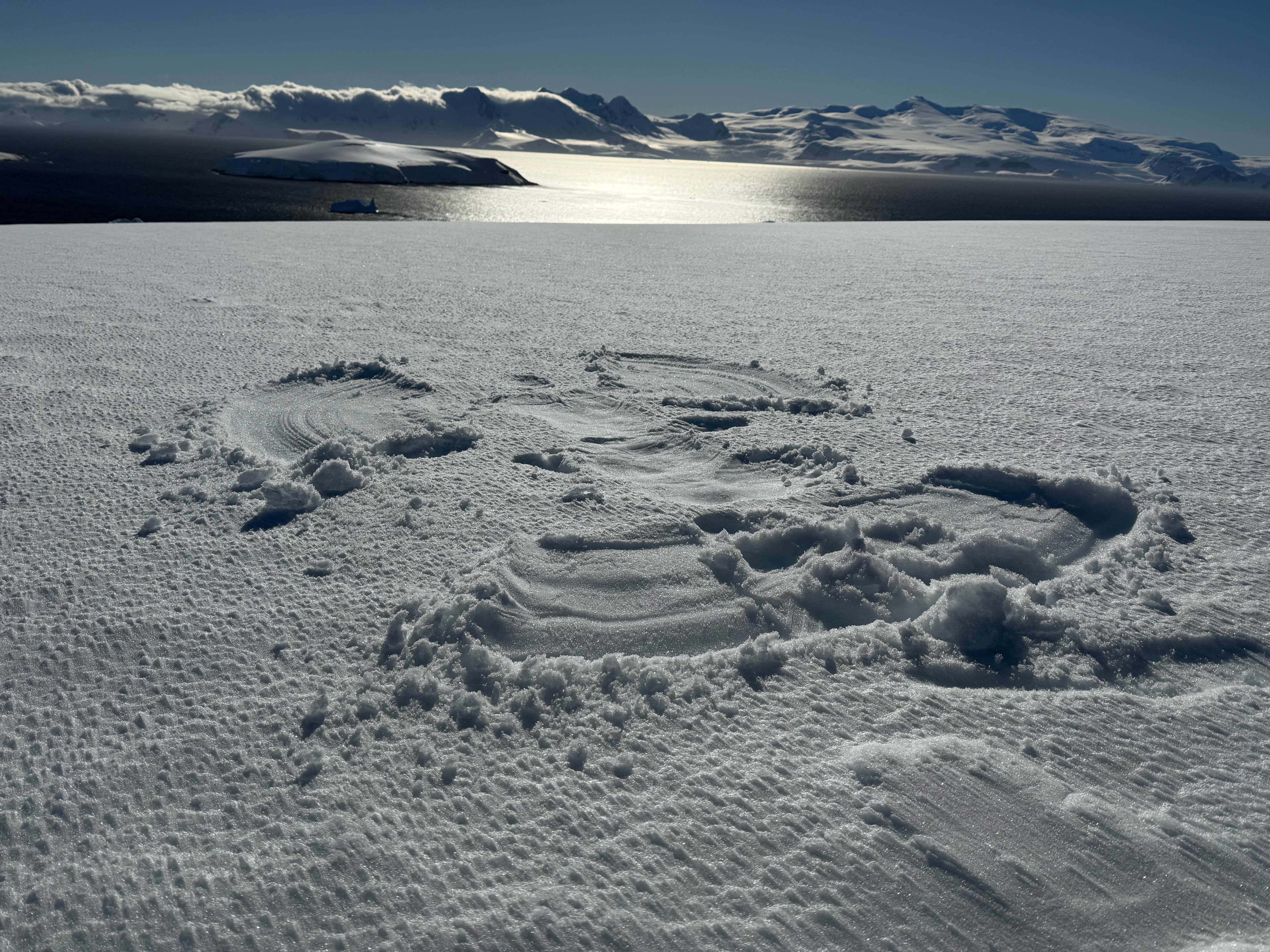 I'll let you guess who made this (very impressive) snow angel. Name starts with an M and rymes with Trike.