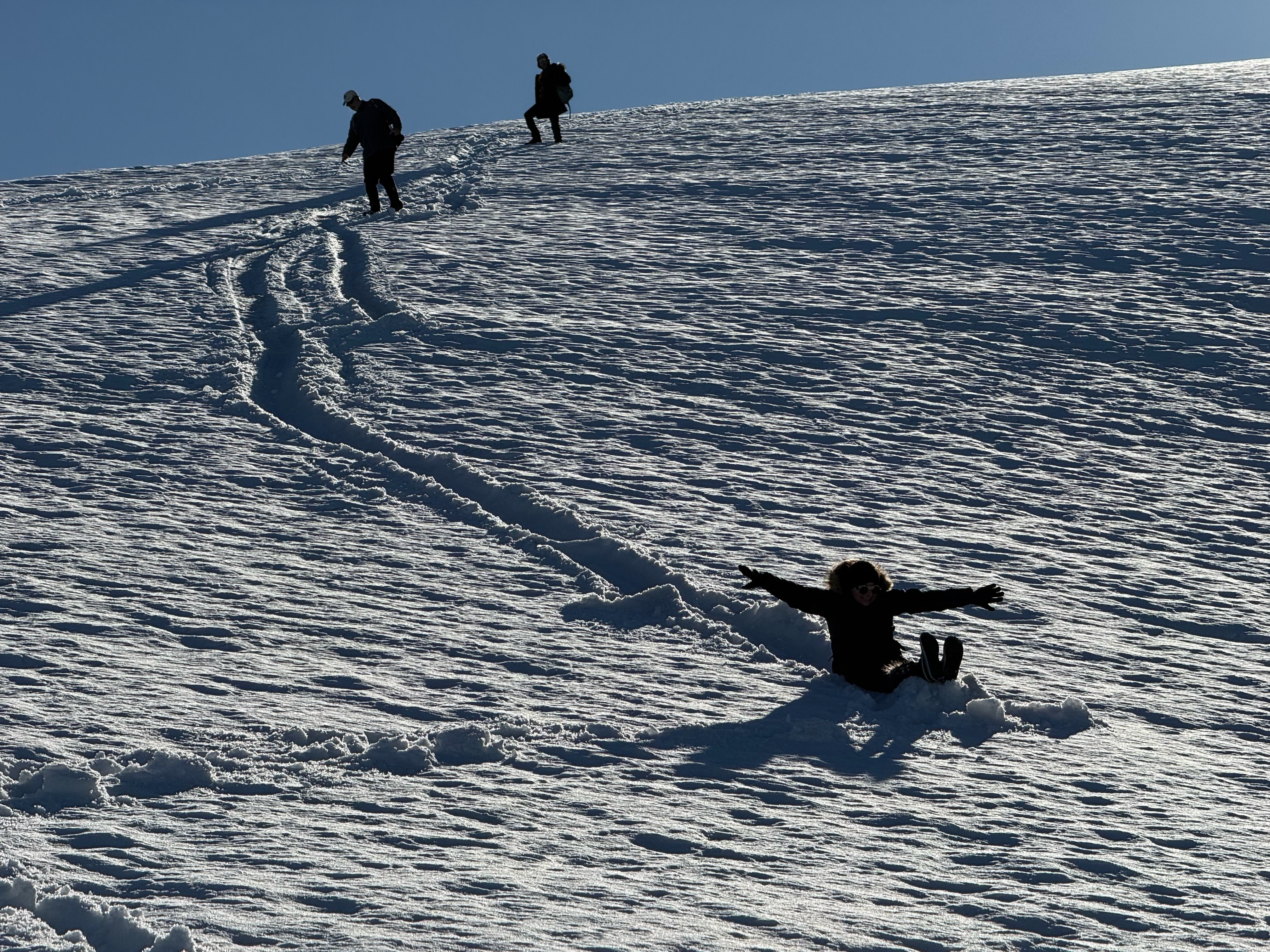 Fortunately, it was steep enough for some barebutt sledding on the way down.