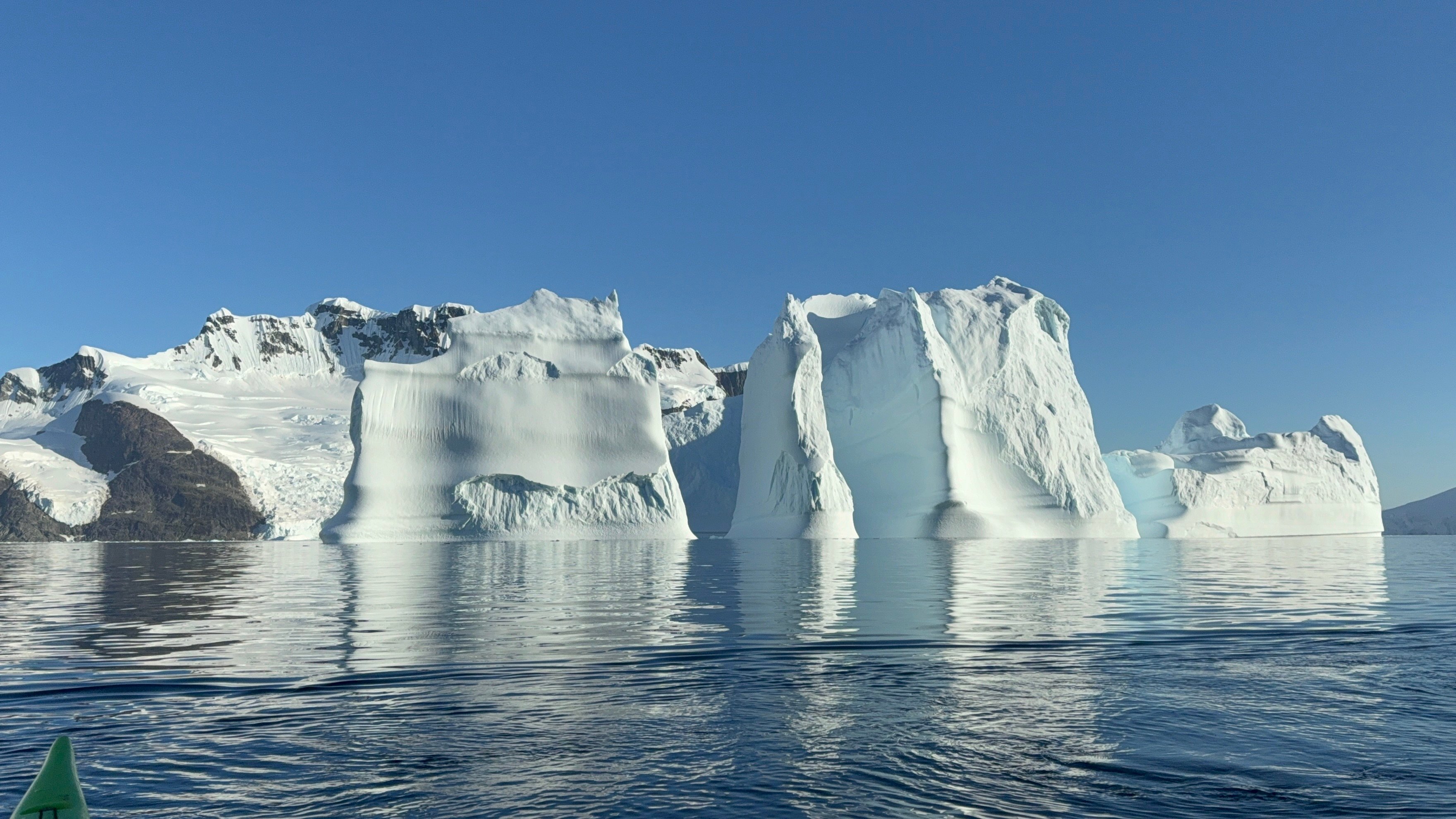 This iceberg (cluster?) was waiting for us on the far end of the ice strait. I'd love to be able to get close to these things, but the danger is just too high of ice falls and inversions.