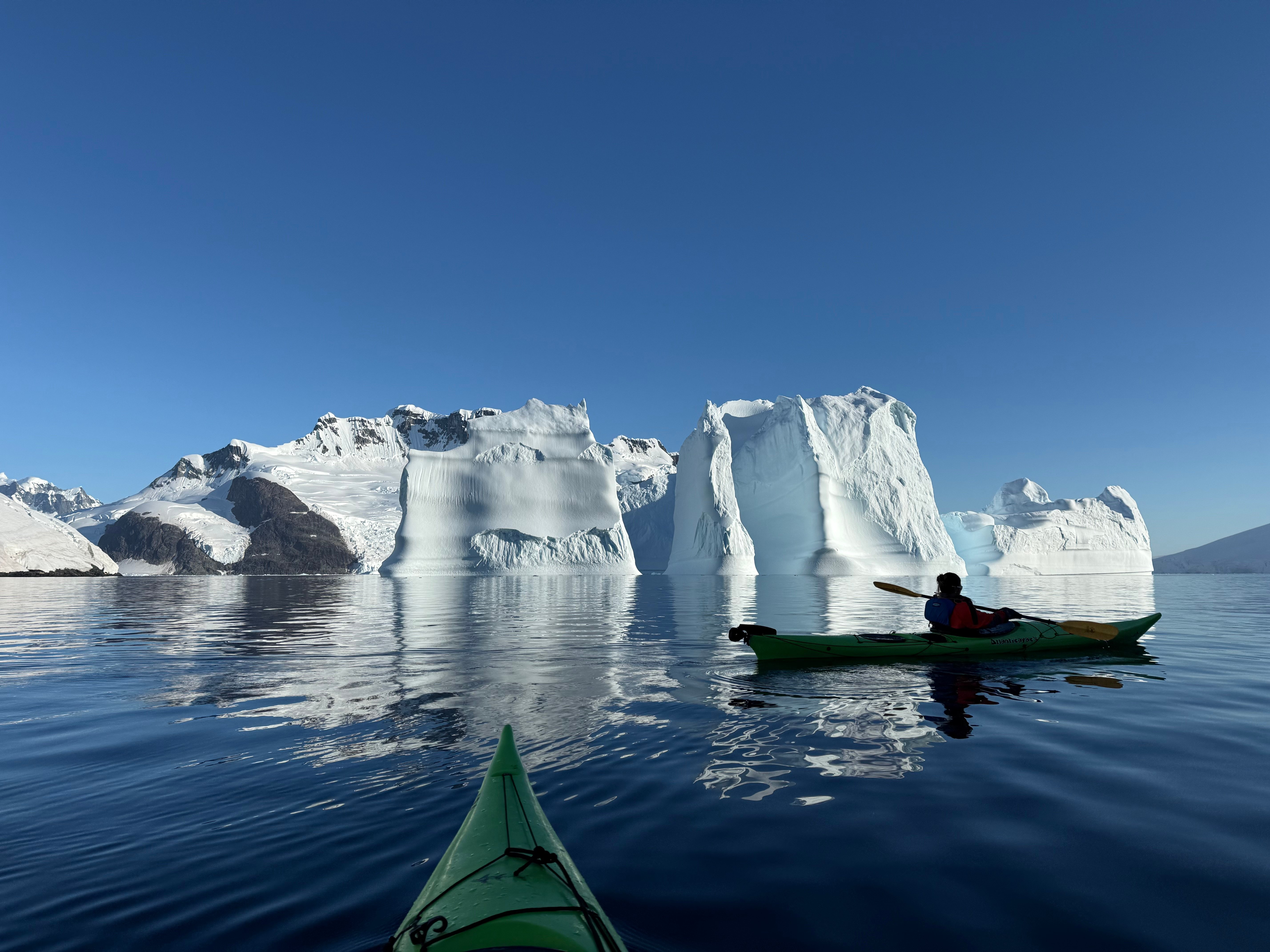 Sadly I don't many pictures or video of this (so hard to do while kayaking) but we kayaked through what felt like a narrow passage (relatively speaking that is it was still hundreds of feet wide) with ice cliffs several hundred feet high on each side. Hard for the brain to soak in. You could also hear "calving" events the whole time with large amounts of ice falling in for miles around us. Each one sounding like distant thunder, gun cracks, and explosions depending on the circumstances.