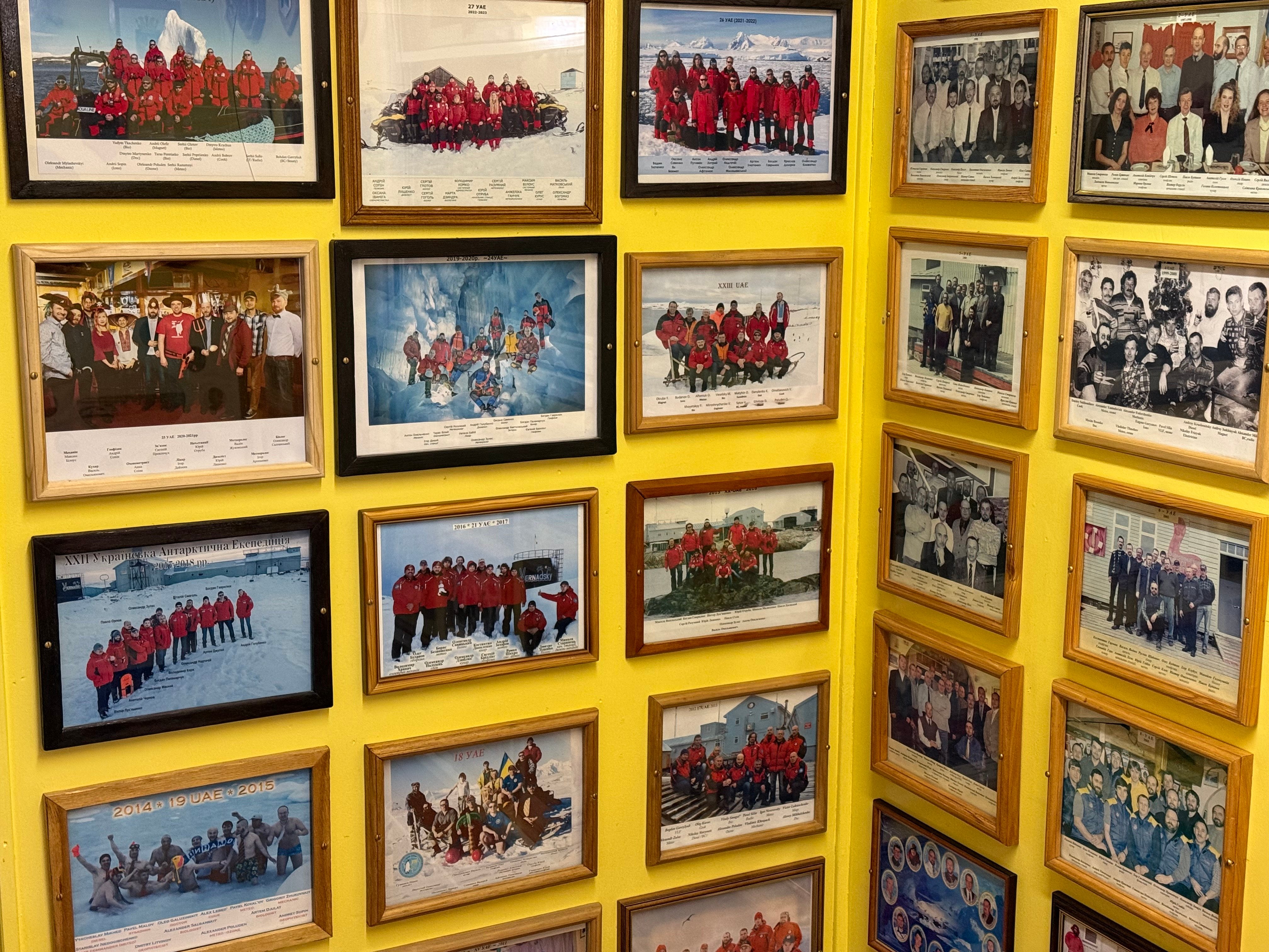 The entire stairway was covered in these team photos going back into 40's and 50's of all the research teams who have staffed the base.